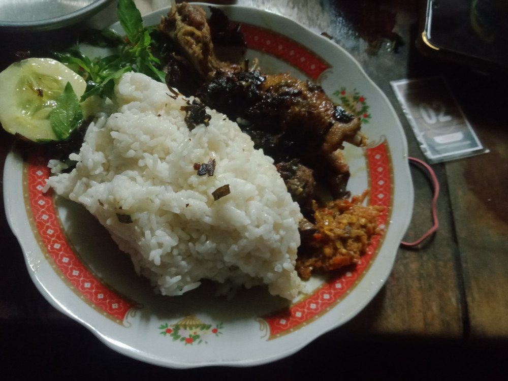 Seporsi nasi bebek di samping Taman Makam Pahlawan Jalan Kusuma Bangsa Surabaya. Lokasinya di depan THR Mall.