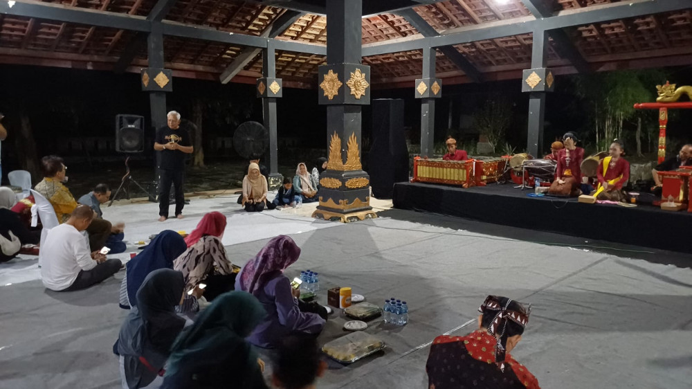 Vice President GGN Association, Prof Dr Ibrahim Komoo, saat beri sambutan di Kayangan Api di Kecamatan Ngasem, Bojonegoro. Sabtu malam (17/11/2026) (Aset: imam/beritabojonegoro)
