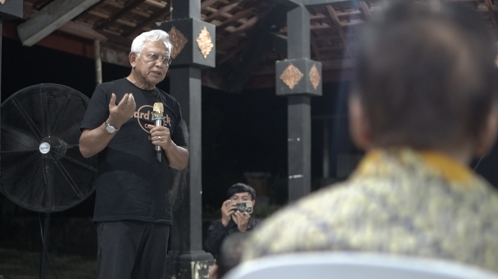 Vice President GGN Association, Prof Dr Ibrahim Komoo, saat beri sambutan di Kayangan Api di Kecamatan Ngasem, Bojonegoro. Sabtu malam (17/11/2026) (Aset: imam/beritabojonegoro)