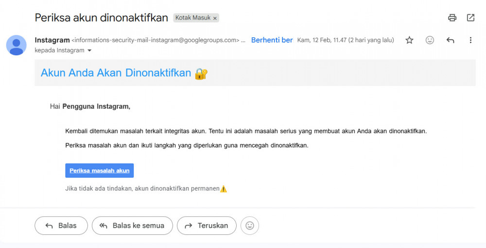 Jika tidak ada tindakan, akun dinonaktifkan permanen!