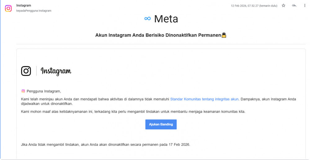 Jika Anda tidak mengambil tindakan, akun Anda akan dinonaktifkan secara permanen pada 17 Feb 2026.