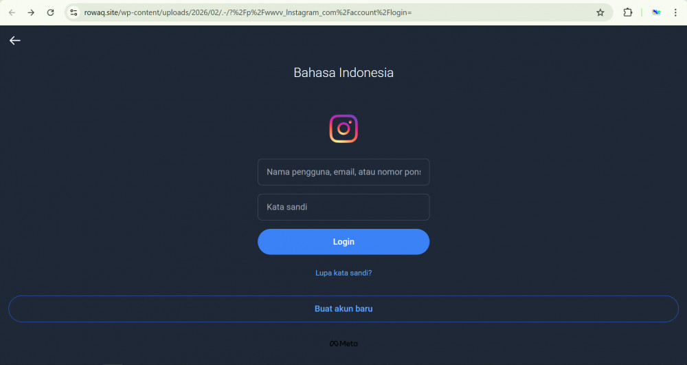 Tangkapan layar salah satu skema phising dalam proses peretasan akun Instagram. (Aset: Istimewa)