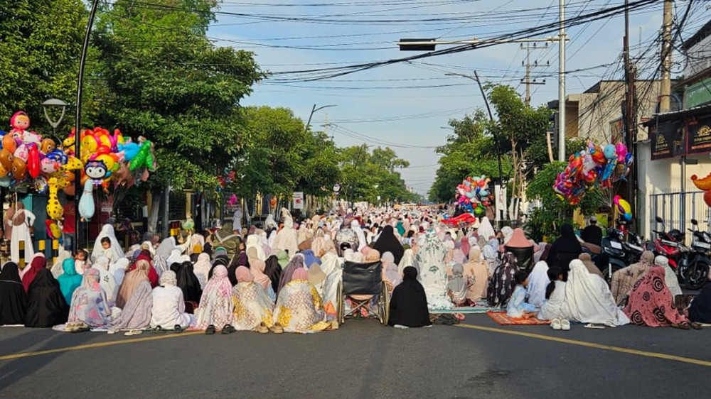 Salat Idulfitri 1447 Hijriah di Jalan Teuku Umar depan Masjid At-Taqwa Kota Bojonegoro. Jumat (20/03/2026) (Aset: beritabojonegoro/imam nurcahyo)