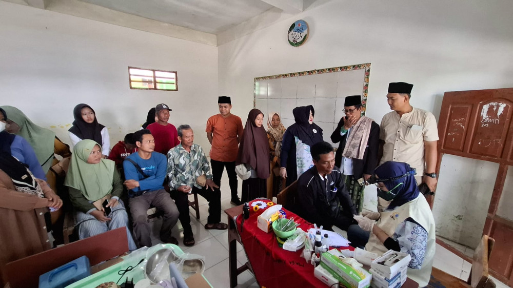 Setidaknya, sebanyak 500 kupon untuk pemeriksaan dibagikan ke warga desa setempat, sedangkan untuk santri bisa mengikuti pengecekan dan pengobatan gratis tanpa kupon.